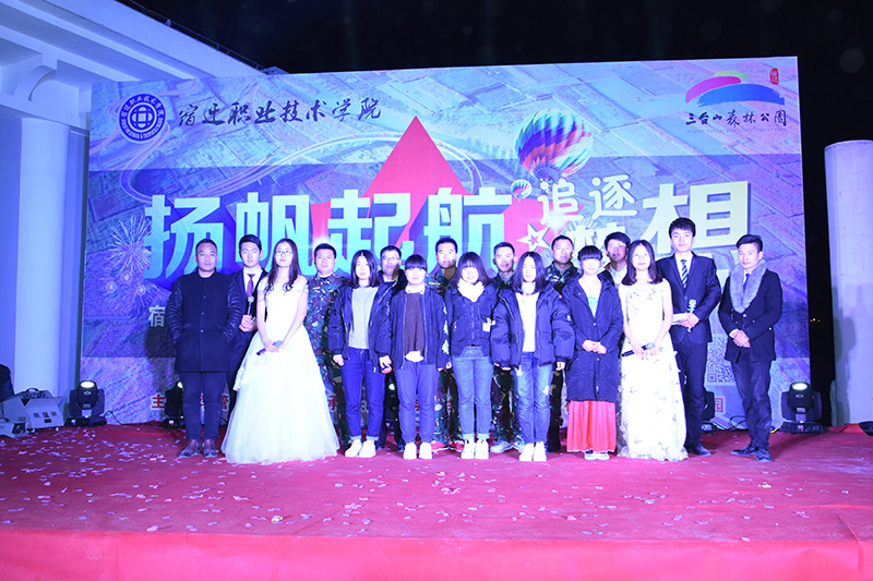 张凤杰院长致新年贺词,他说教职工在宿迁职院辛勤工作,不只收获成绩,也感受快乐,希望大家快乐工作、幸福生活。希望同学们在新的一年里学习进步,尽情享受今晚的美好时光。