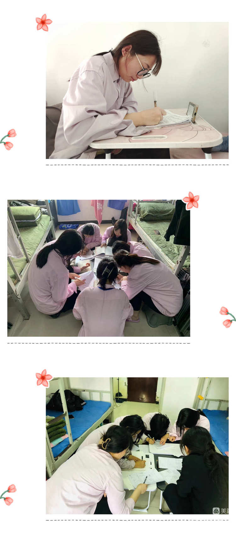 “盛年不重来,一日难再晨。及时当勉励,岁月不待人”。虽然是线上学习,学生们没有丝毫懈怠,他们在宿舍克服种种客观条件,用床板搭起学习桌,行李箱“化身”小板凳……他们全神贯注,状态饱满,积极参与课堂互动,认真记笔记、查资料。
