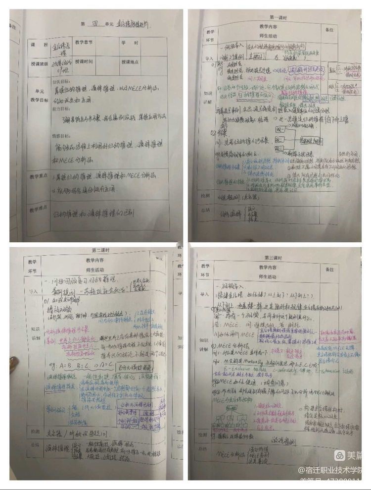 为了每一节课都能燃烧起学生听课的激情,教师们仍不忘参与教研活动。各教研组认真研讨、集思广益,充分整合优质资源,更好地为学生服务,精心备课,通过线上直播,集中讲授的形式全面开展线上教学。教师根据各班学情制定学习内容,同时跟踪调查,及时了解孩子学习情况,灵活调整课程内容。翻开他们一页页手写的教案,五颜六色的标记映入眼帘,那是他们教学态度的符号。
