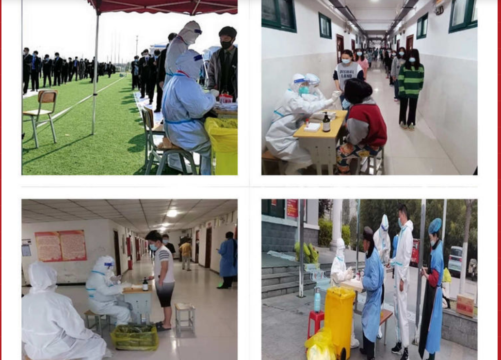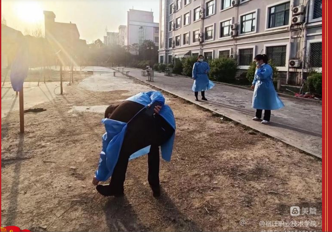 在这场战役里,医护人员是最勇敢的逆行者。他们从各个医院集结起来奔赴抗疫一线。在疫情防控的关键时刻,他们挺身而出,冲锋在前。一个个坚毅的背影,活跃在抗疫最前沿,用生命构筑“护城河”,守护着职院每一个人的健康与安全。那一张张被口罩勒到变形甚至破皮的脸颊,那一双双被汗水浸到泛白的双手,那一个个操场上疲惫的身影……无不感动着职院所有人。