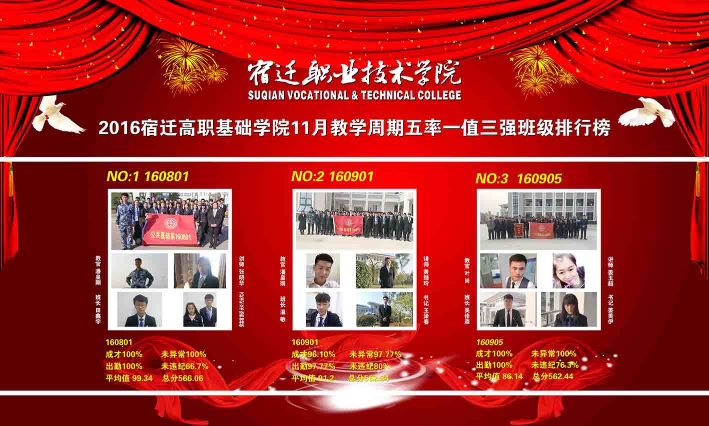 2016宿迁高职基础学院11月教学周期五率一值三强班级排行榜 - 月度评优 - 皇冠hg6686