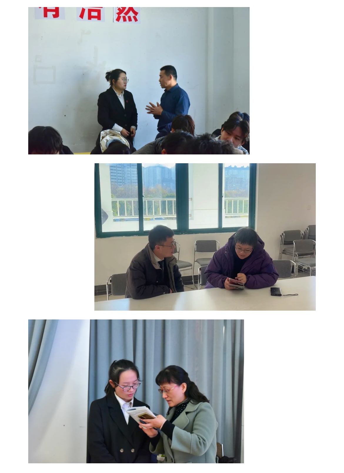 调研期间,三位专家走进课堂,分别听取了徐玉龙老师、贾悦悦老师讲授的《习近平新时代中国特色社会主义思想概论》以及张馨心老师所授《思想道德与法治》的相关章节内容。课后,专家们与授课教师展开深入指导交流,剖析问题、分享见解,为优化教学质量助力。