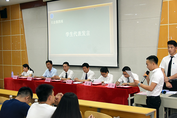 来自互联网营销系陈利成同学,他在发言中表示,总以为自己已经长大,总以为自己可以毫不在乎,但当离别就这样毫不留情的到来的时候,才发现自己与职院这个大家庭早早就分不开了。他代表毕业生说出了发自肺腑的感谢,感谢母校包容我们的懵懂无知,孕育我们的睿智果断,给我们展示自我的舞台。感谢老师毫无保留地将知识传授给我们,对我们体贴入微,使我们的生活充满了家的温暖;感谢老师的磨练与指导,在我们成长的道路上留下深深的印迹。感谢父母,一路上风雨兼程,为我们撑起一片灿烂无比的晴空。