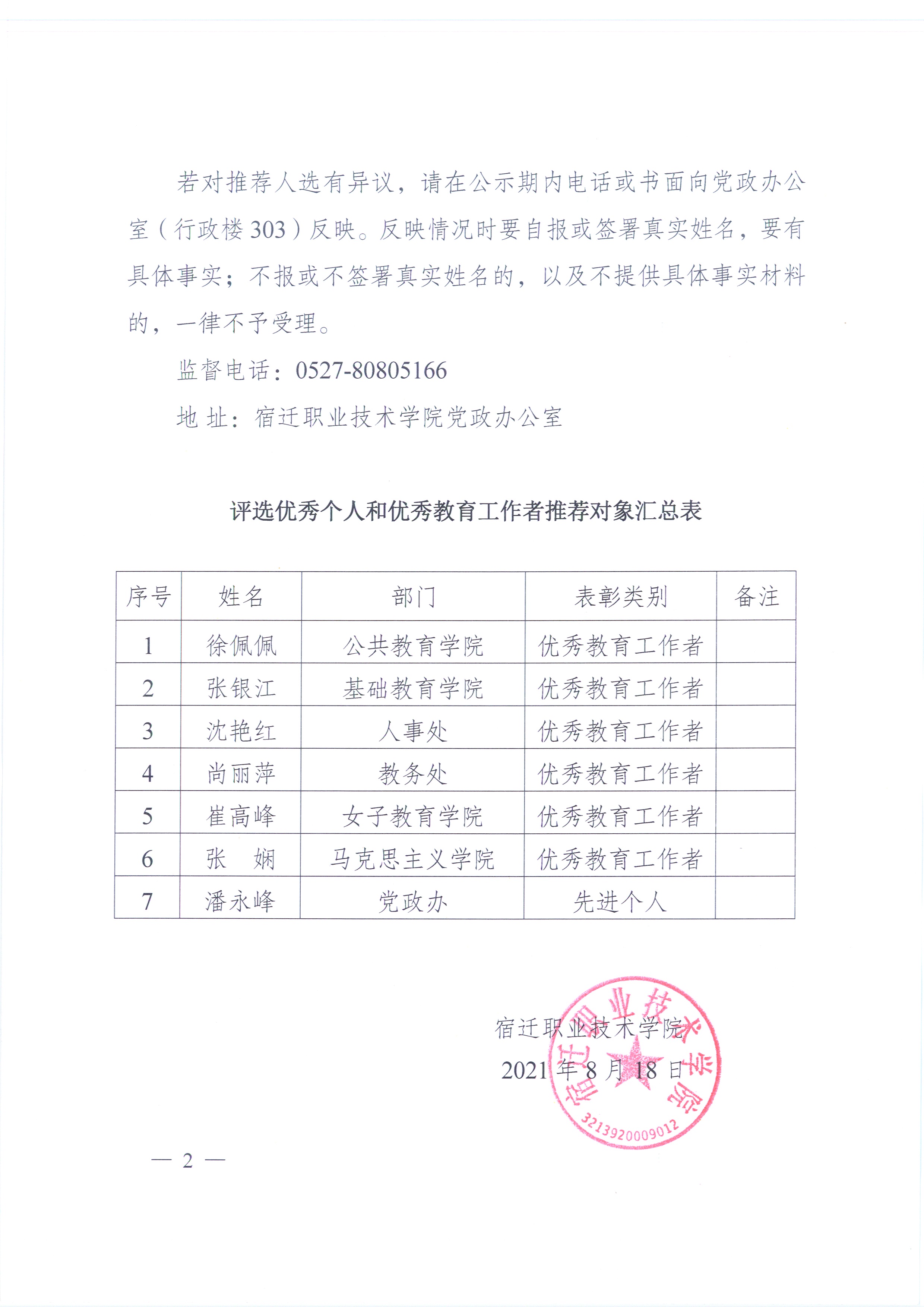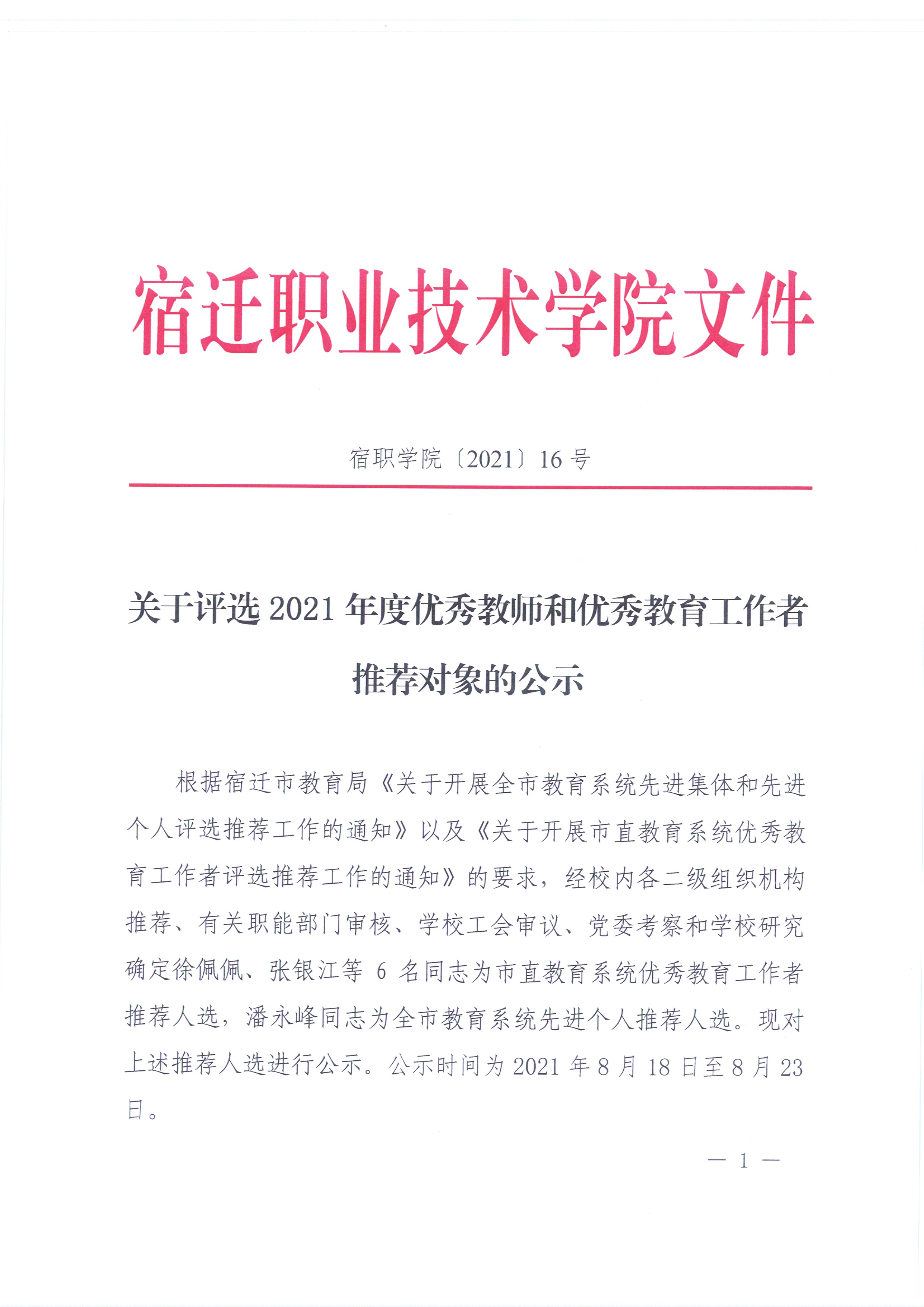 关于评选2021年度优秀教师和优秀教育工作者推荐对象的公示 - 通知公告 - 皇冠hg6686