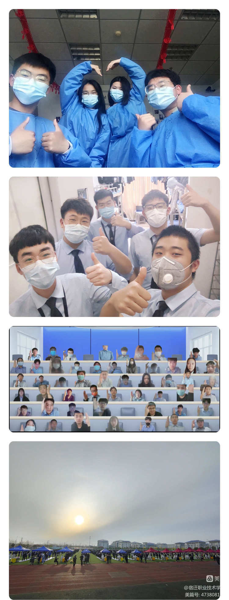 四月的宿职院,春水漾漾、春光堪赏。最是一年春好处,却因突如其来的疫情让我们按下了“慢行键”。为坚决打赢疫情防控阻击战,确保我院师生平安健康,学校闻令而动、齐心战“疫”、众志成城,义无反顾的投入到守护城市、守护学校、守护学生的行动之中。