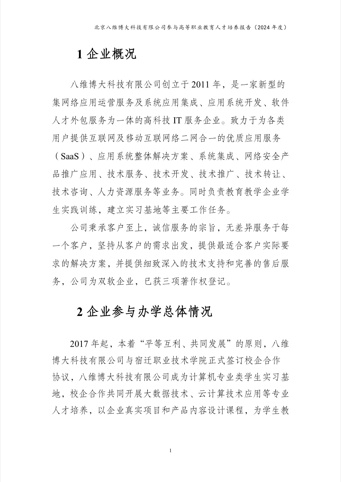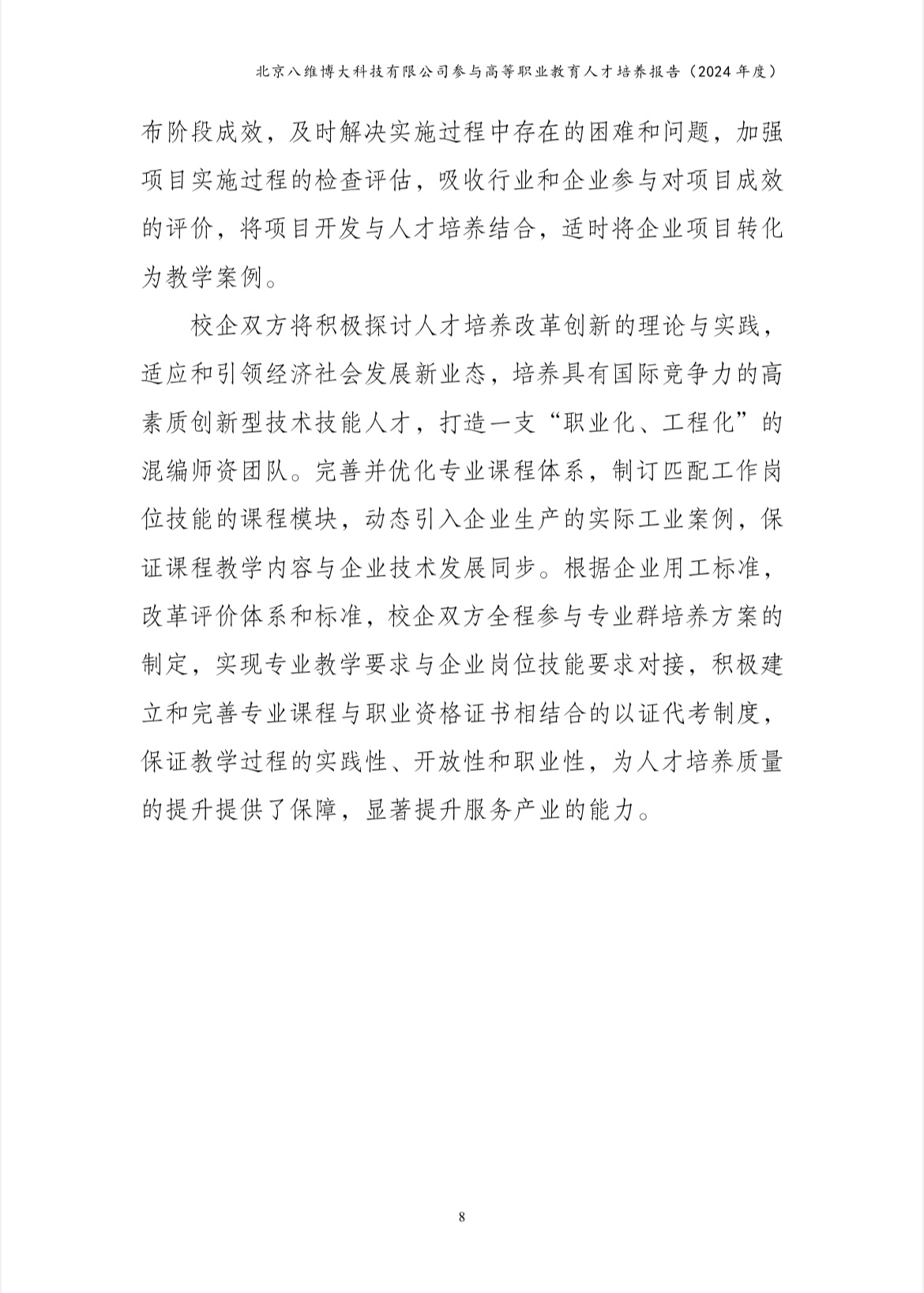 北京八维博大科技有限公司参与高等职业教育人才培养年度报告(2024年度) - 通知公告 - 皇冠hg6686