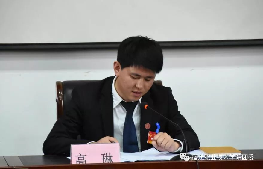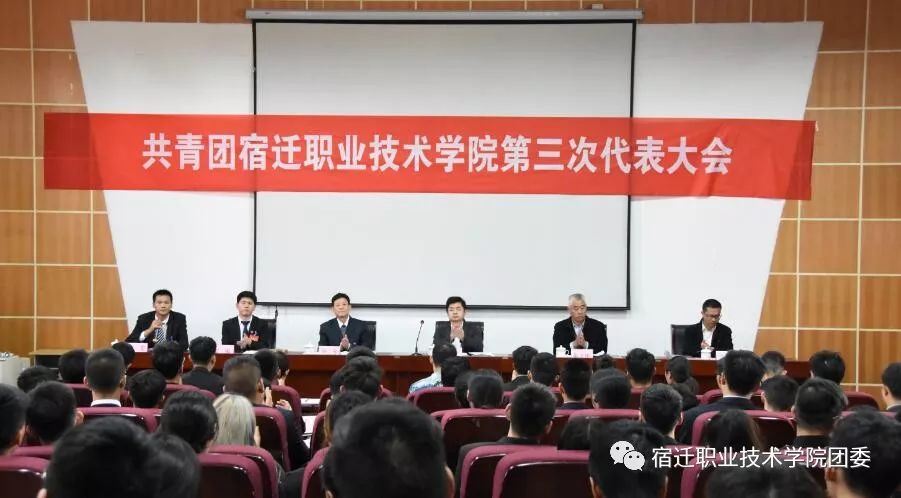 刘书记首先发表致辞,他向大会的胜利召开表示热烈的祝贺并向宿迁职院广大团员青年提出希望。他希望广大团员青年怀揣梦想,加强自身学习,努力成为国家的栋梁之才;希望学校团干不断提高服务能力和综合素质;希望学校团组织更好地发挥桥梁和纽带的作用,希望新一届团委班子,要充分认识到自己肩负的重任,脚踏实地、努力完成本届团委提出的各项任务。