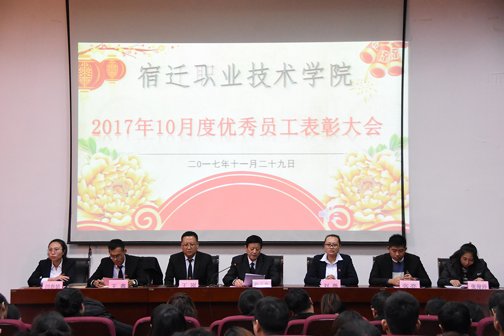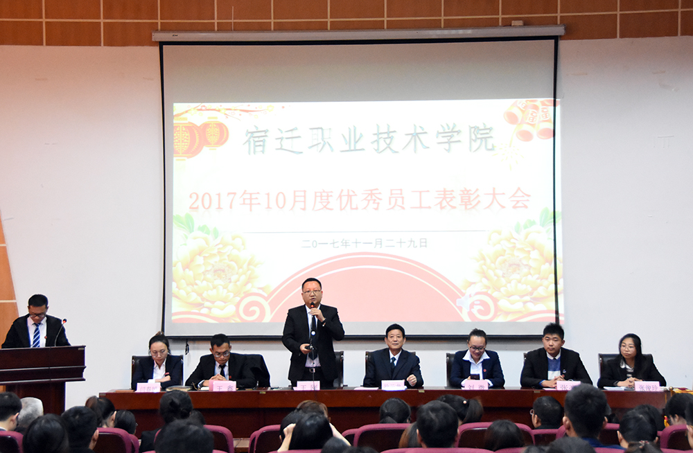 2017年11月29日下午,我院在多功能报告厅隆重举行10月度优秀员工表彰大会,大会由党政办主任潘永峰主持;学院党委书记徐云龙、副院长王刚、副院长刘微等出席活动,与各学院教师一同共庆,表彰育人先进。