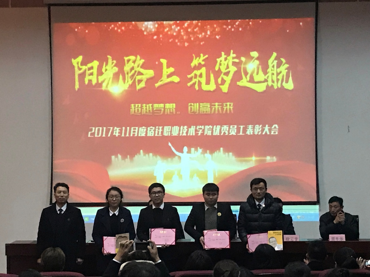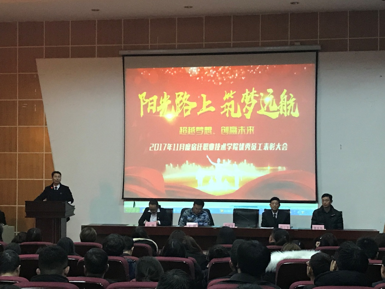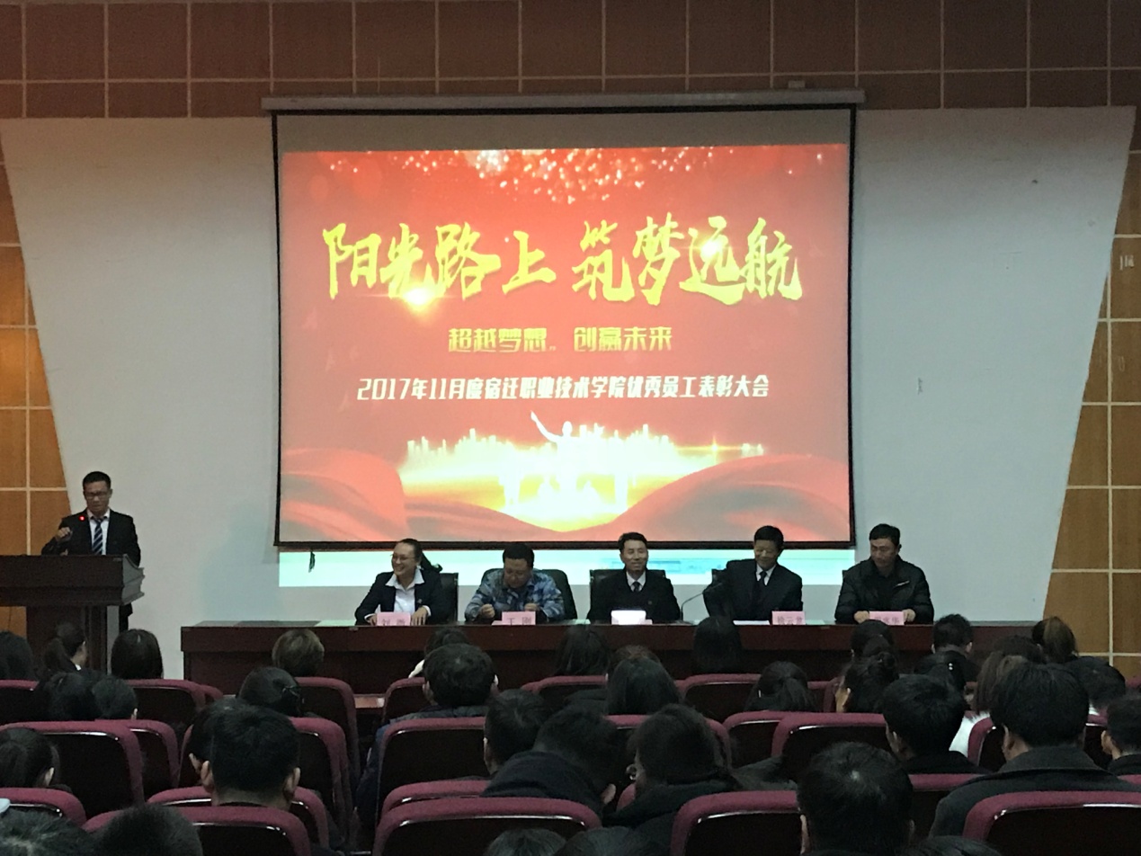 2017年12月29日下午,在元旦佳节来临之际,皇冠hg6686在多功能报告厅隆重举行11月度优秀员工表彰大会,学院院长杨晓龙、党委书记徐云龙、副院长王刚、副院长周兆华、副院长刘微、各二级学院领导及部分教职员工出席了大会。大会由党政办主任潘永峰主持。