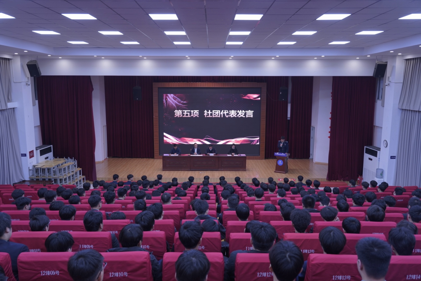为进一步提升大学生的国防意识、国家安全意识,弘扬爱国主义精神,适应新时代“一年两次征兵”新要求,认真贯彻落实兵员精准育苗预征预储试点工作要求,努力构建完善高校国防教育新模式,积极探索精准征集、定向征集新途径,推动学院征兵工作持续健康发展,充分发挥国防军事类学生社团的先锋模范作用,我校成立首个军事类社团“八一社” ,成立大会于2024年11月13日在一号报告厅召开。hg6686信息设计学院及信息科技学院党支部书记、学生工作处高琳;共青团hg6686委员会书记郭籴;hg6686“八一社”指导老师季梁各二级学院辅导员及学生代表参加本次成立大会。大会由校武装部部长潘永峰主持。