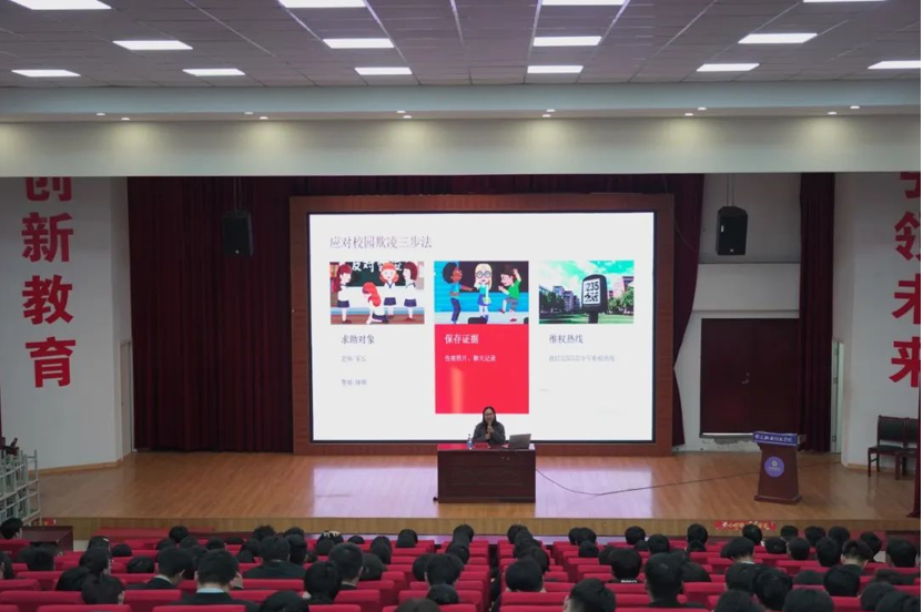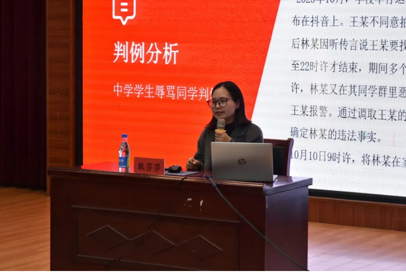 讲座聚焦典型案例,以案释法,结合纹身纠纷案例、校园欺凌、网络暴力等典型案例,以通俗易懂、深入浅出的方式介绍了每个案例的重要意义。网络暴力不仅裹挟着肖像权、名誉权的双重侵害,更如无形利刃割裂网络空间的清朗生态。倡导会场所有学生要以辩证思维,理性辨识谣言,筑牢证据链环,善用法律利剑,维护自身权益。