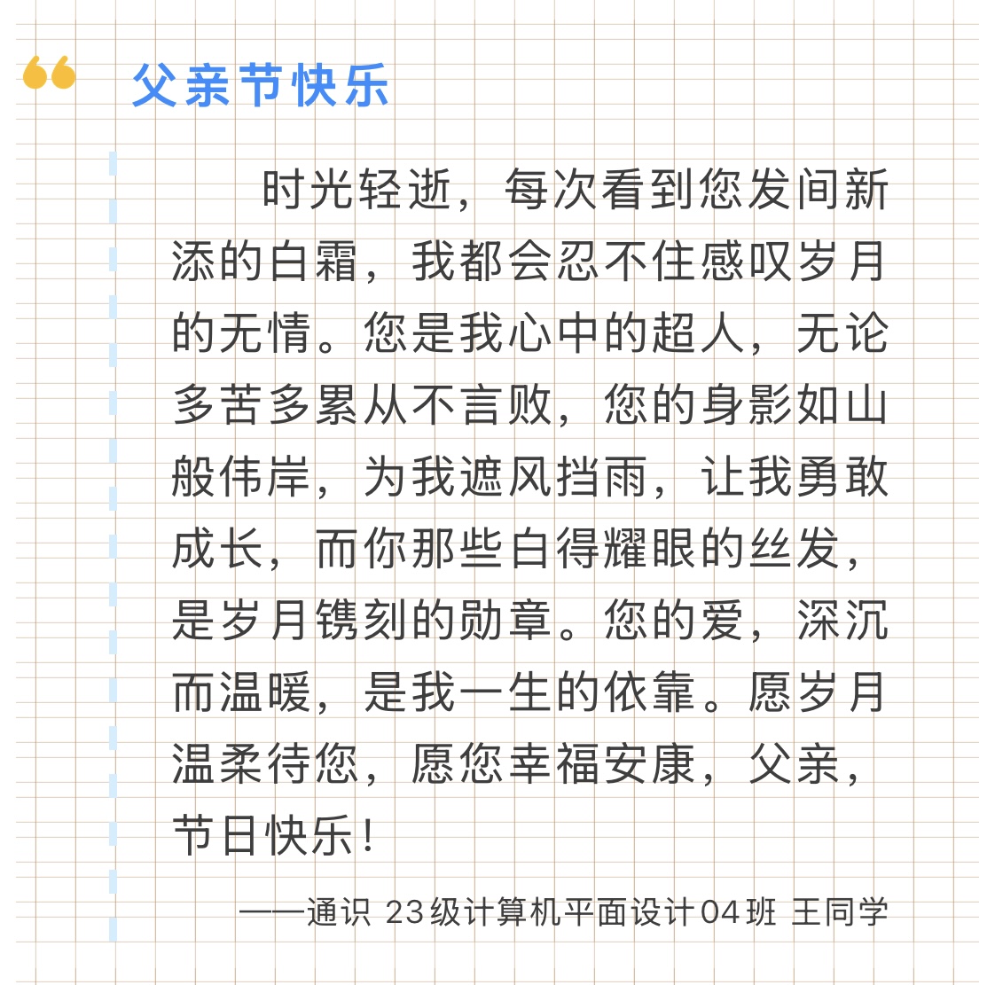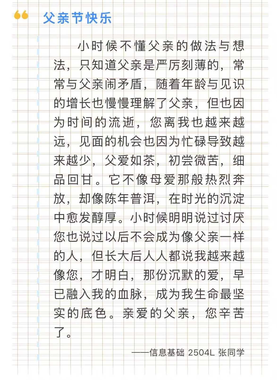 “爸爸,父亲节快乐!我爱您!”